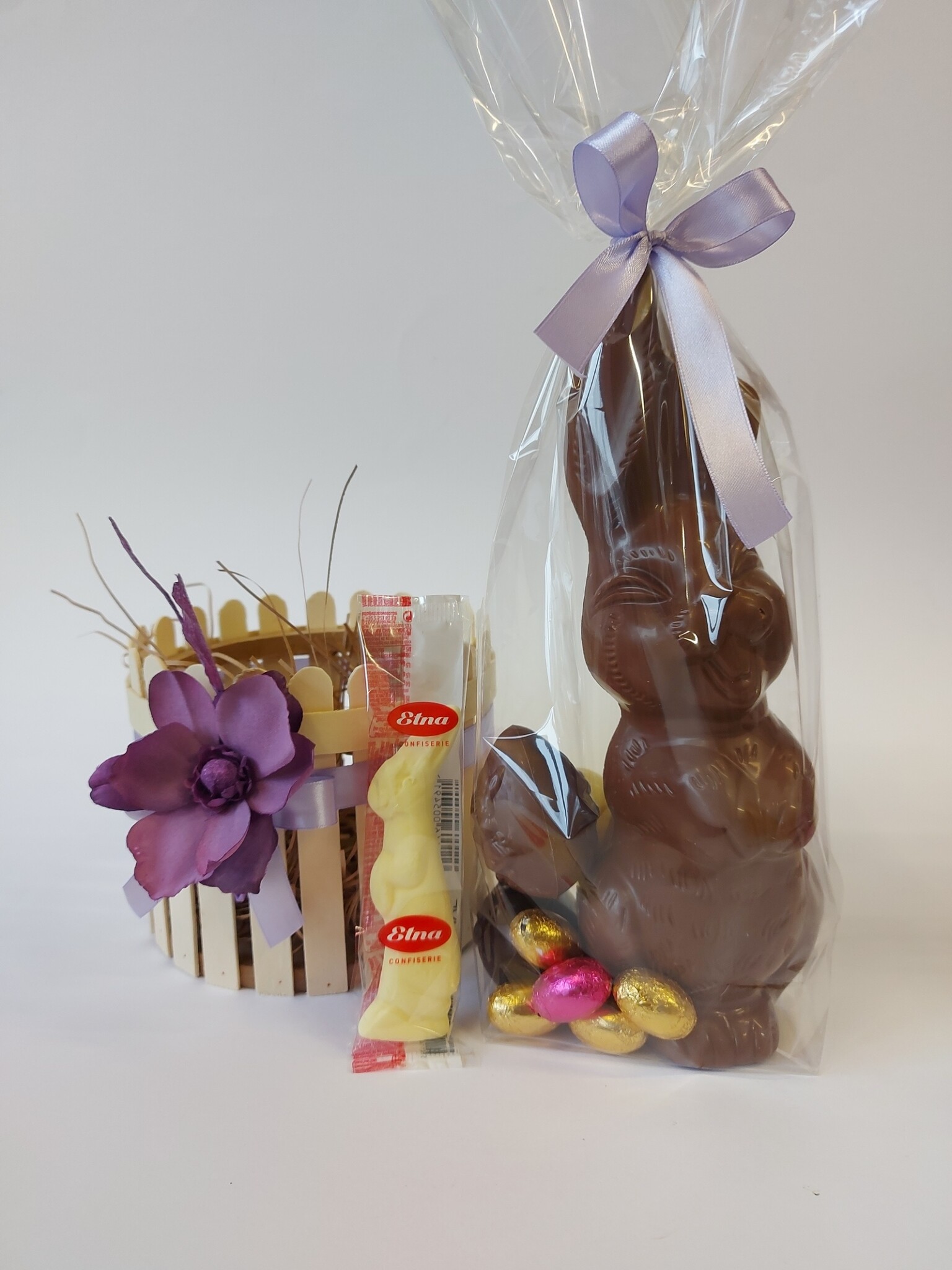 Tuinhekje gevuld met haas 26 cm en een assortiment van eitjes