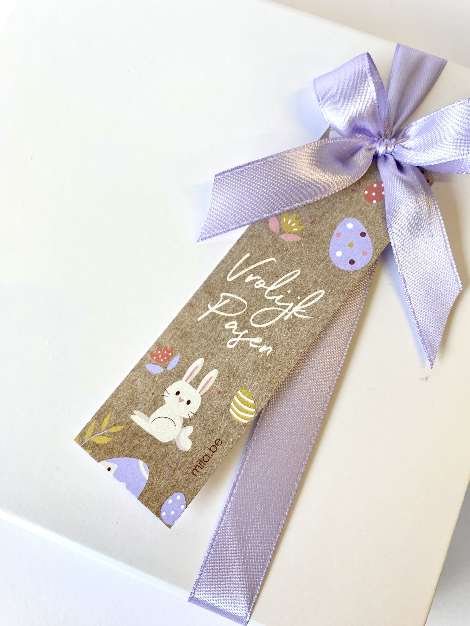 Luxe doos gevuld met een assortiment van 56 kleine gevulde paaseitjs (kwaliteit van pralines). Gesloten met strikje