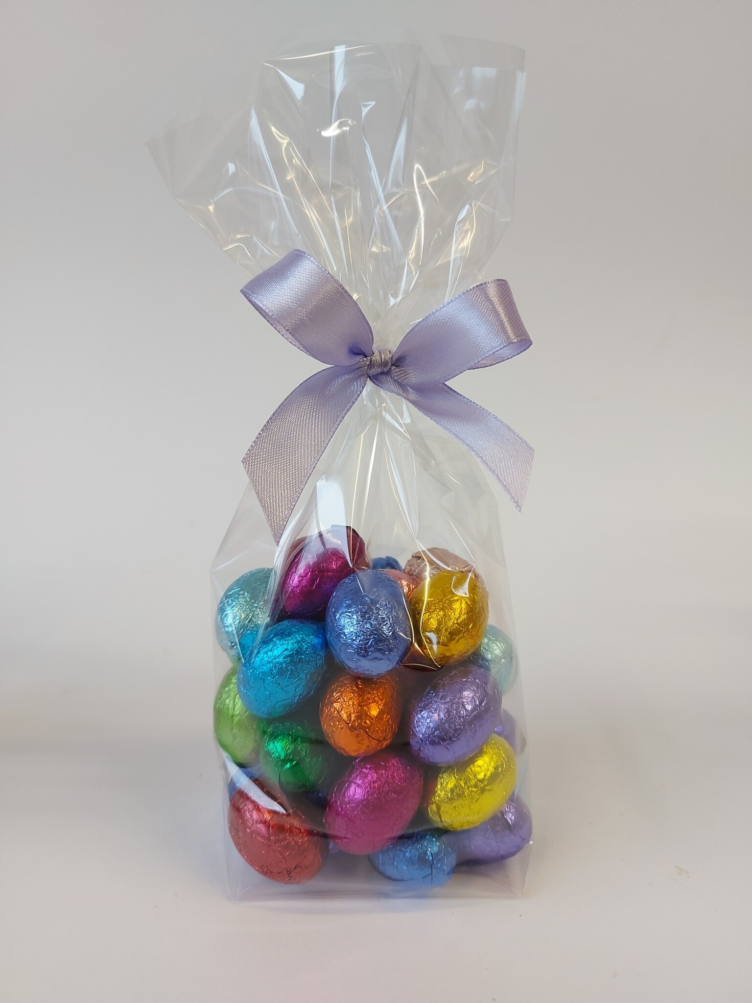 Paaszakjes 250 gr alu eitjes assorti van 8 smaken - mica met strik